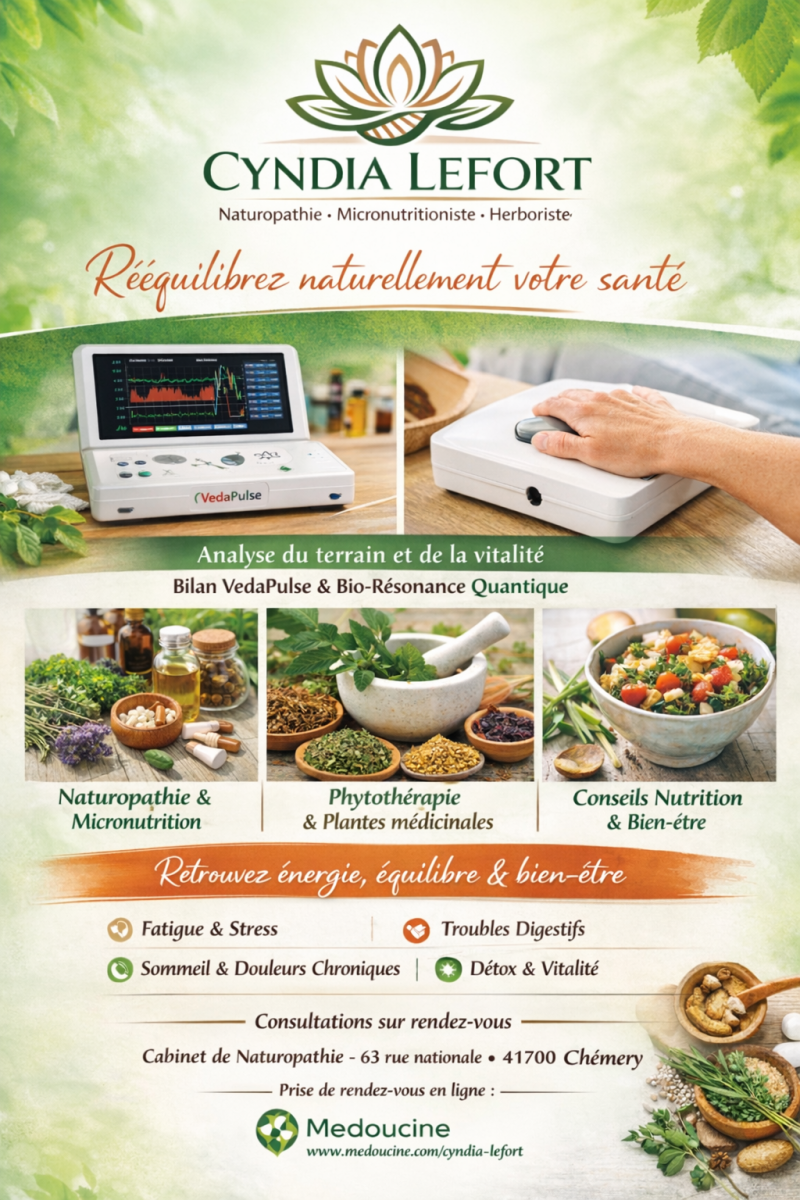 suite à une consultation conseil en phytothérapie et compléments via https://www.medoucine.com/consultation/chemery/cyndia-lefort/19418